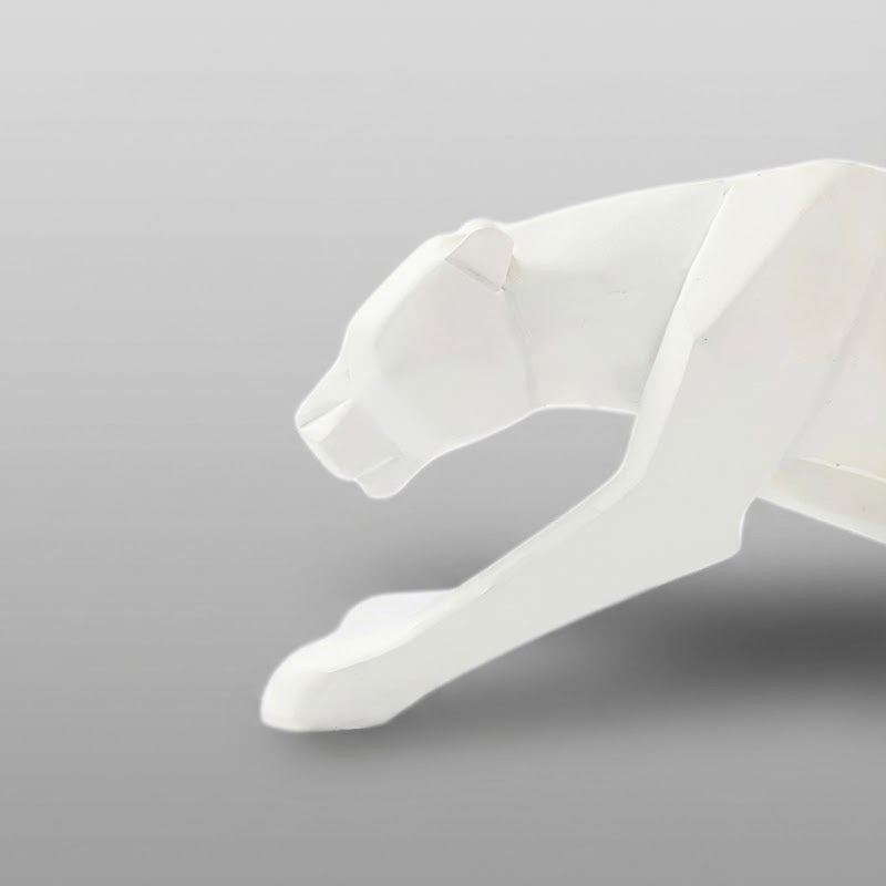 Dans sa posture tendue, chaque angle évoque le moment précis où la lumière rencontre la vitesse. Le blanc pur symbolise la vision, la clarté mentale et la capacité de repérer une opportunité avant les autres.
